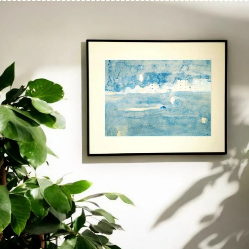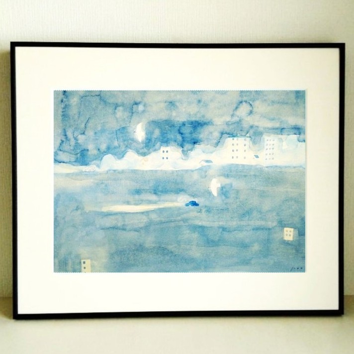 ■size■ frame (348×424mm) 四つ切サイズ picture (240X330mm) 1200g ■仕様■ 材質: 和紙 手彩色: アクリルガッシュ、水性ペン、水彩絵の具 サイン入り ■額縁■ 【BH-03J】 アルミ製フレーム。 シンプルで都会的なイメージの額縁です。 紫外線カットのアクリルガラスが入ります。 ※かぶせ箱入り