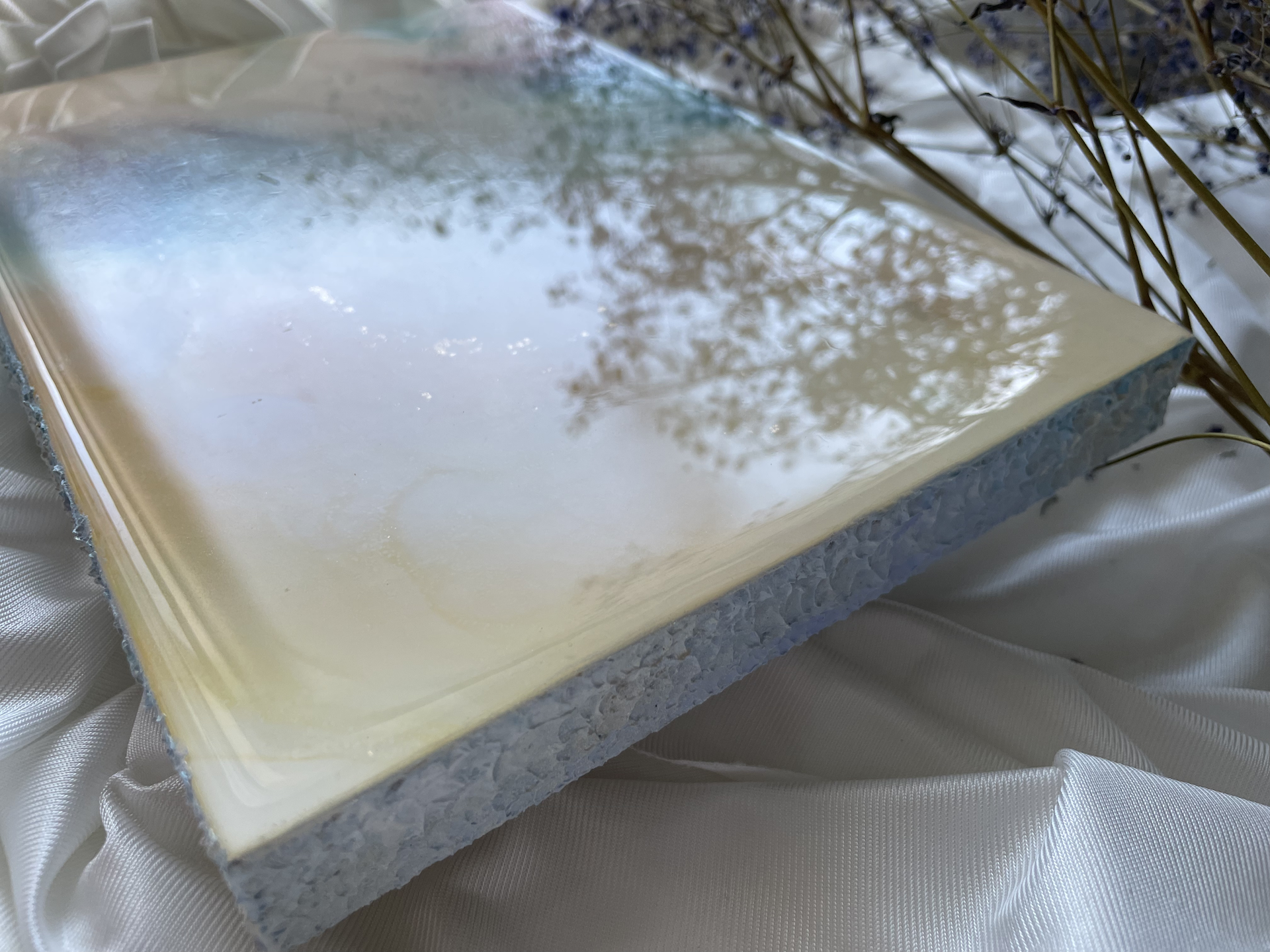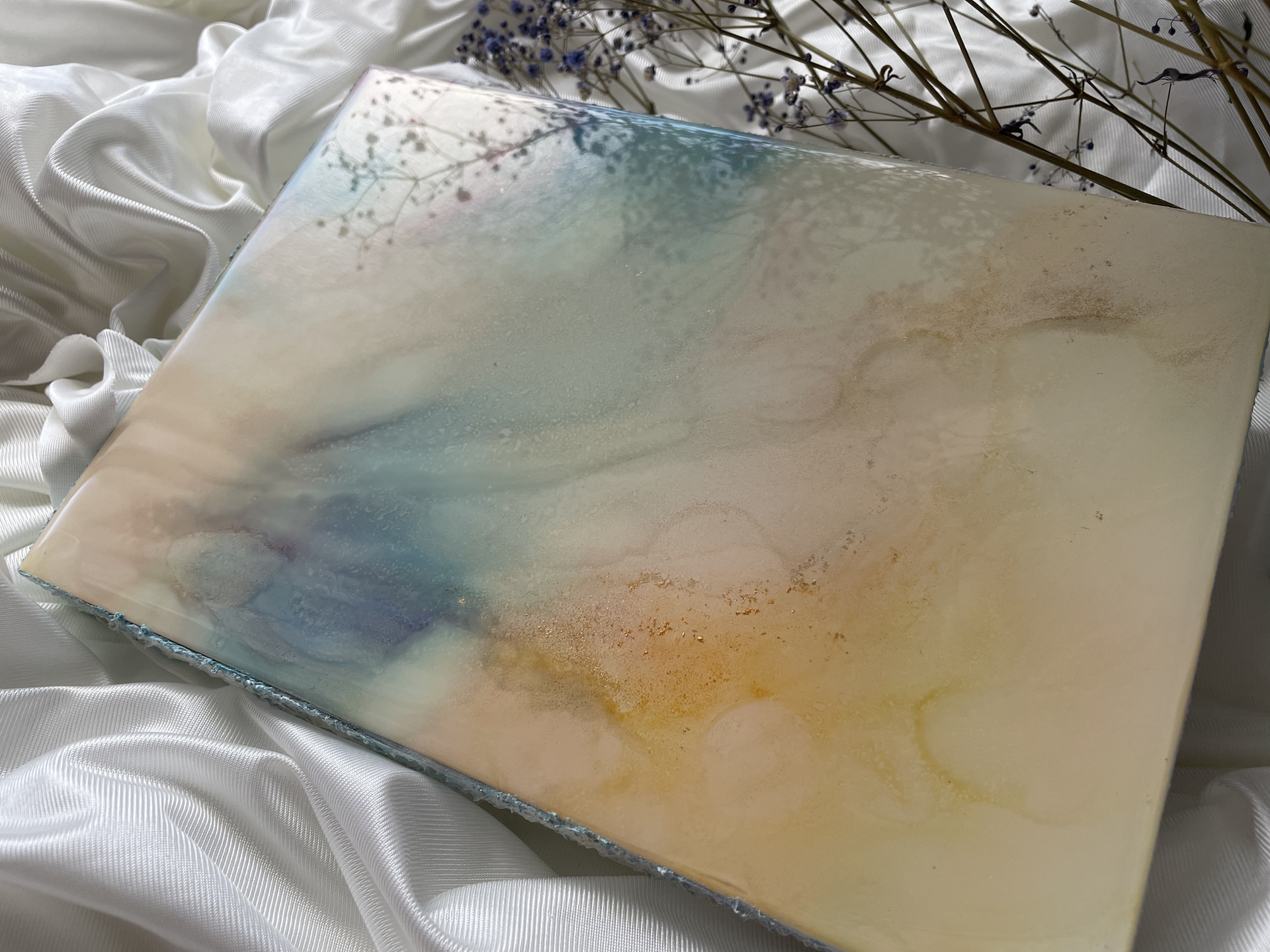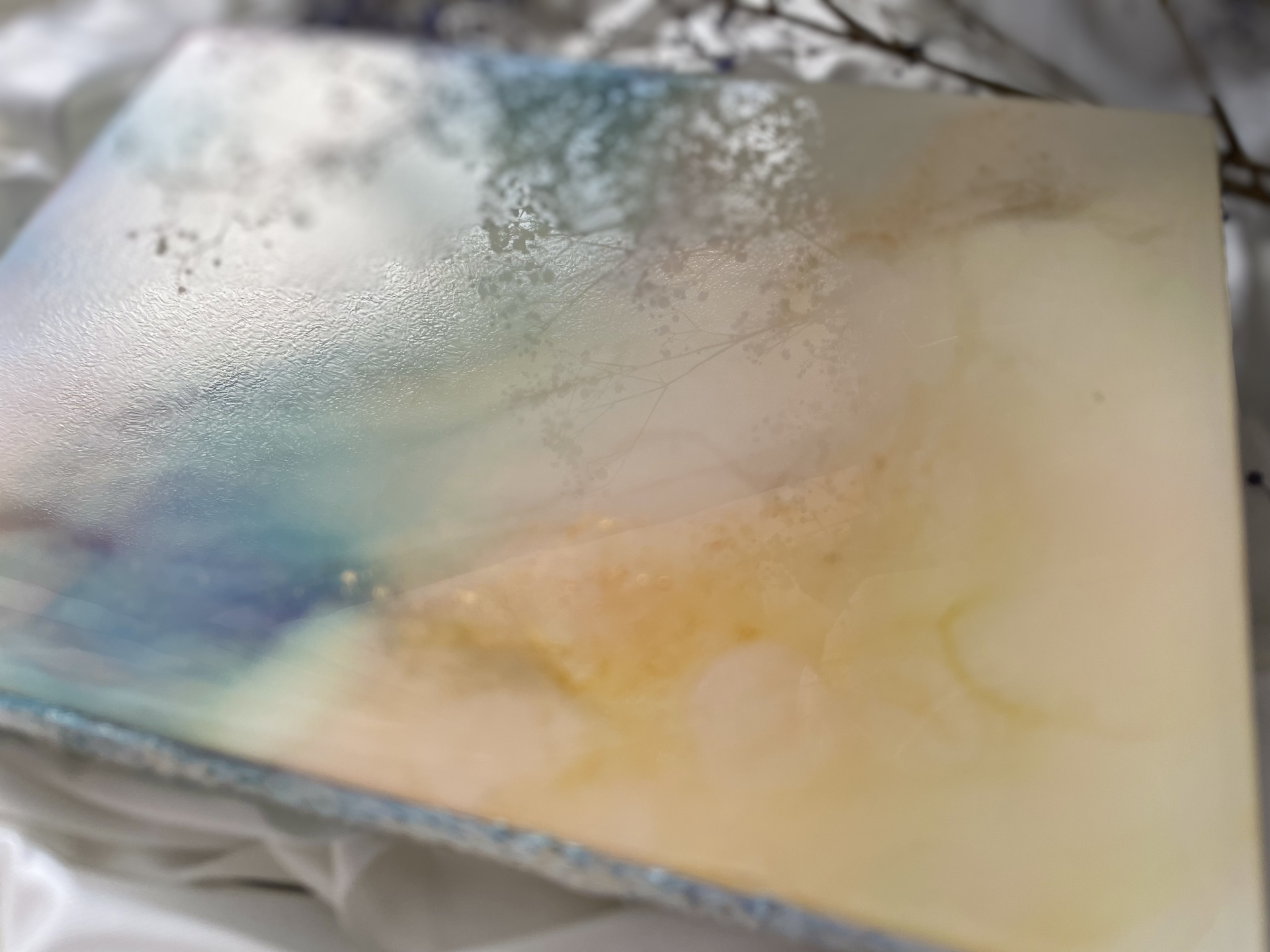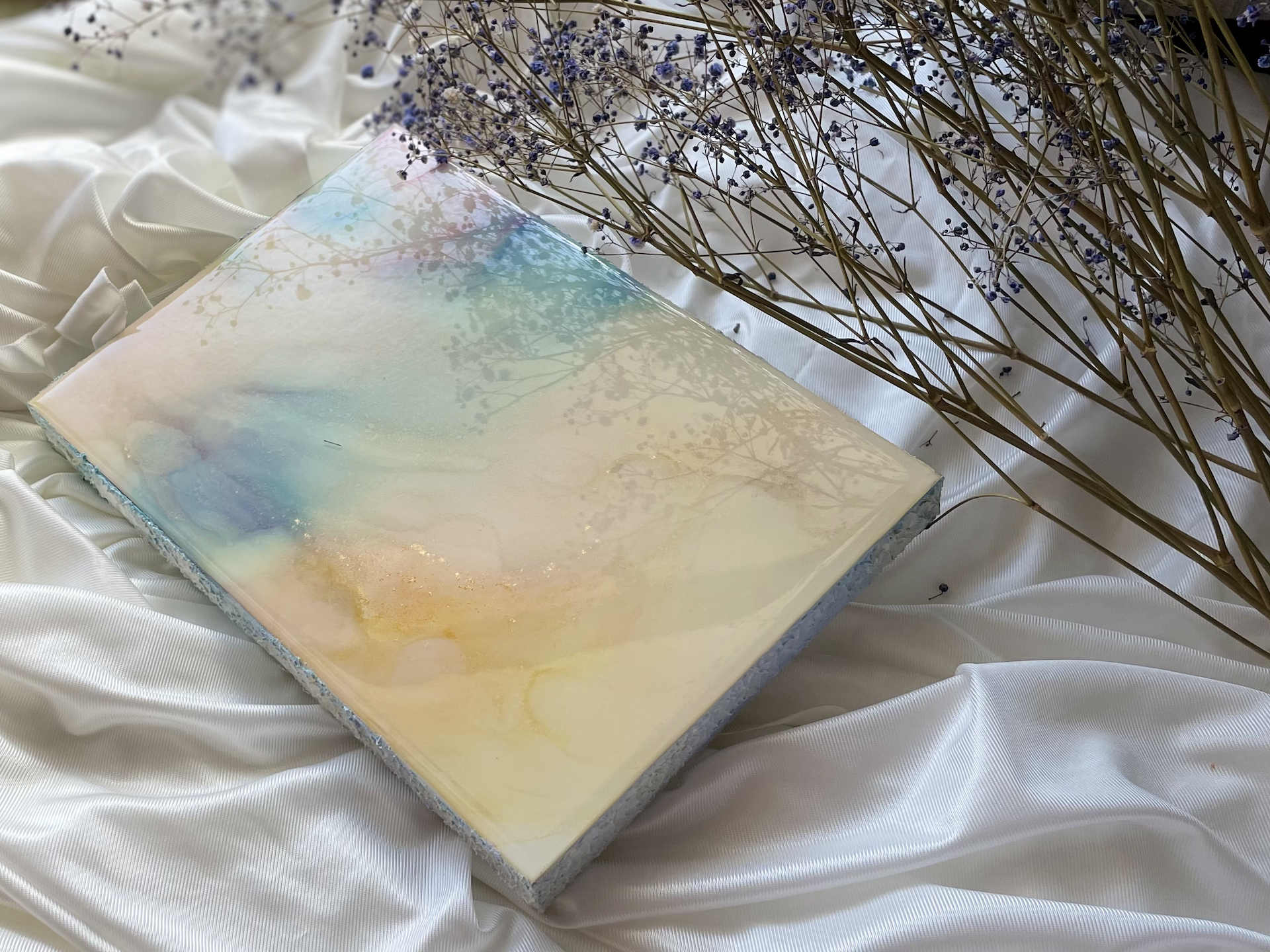 □UV防止スプレーをかけていますが、アルコールインクは紫外線に弱く、変色、褪色することがありますので、直射日光の当たらない場所に飾ってください。