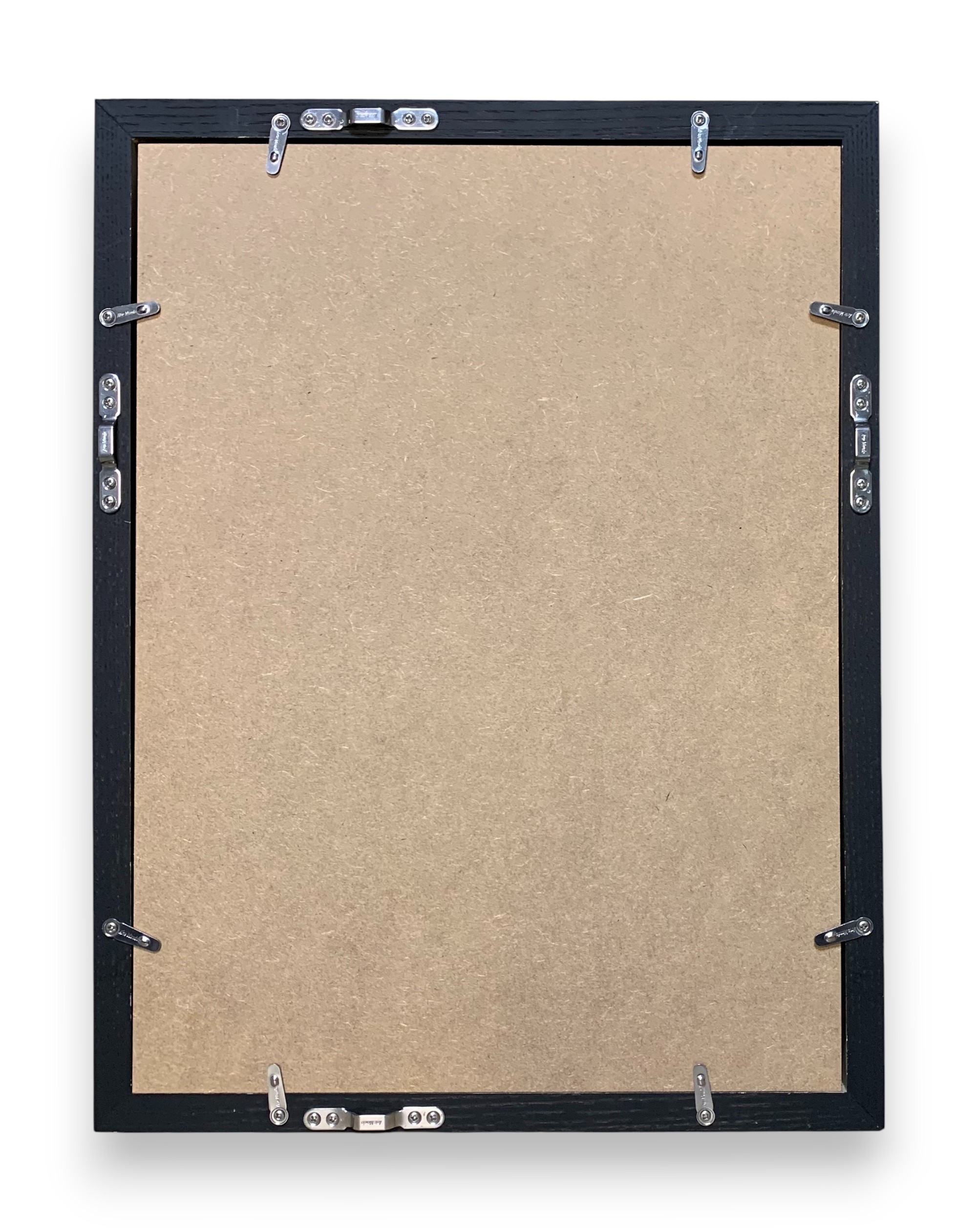 額縁の前面にはアクリル板、裏面には吊り紐が付属します。また、額縁が不要な方はご購入前にお問い合わせください。