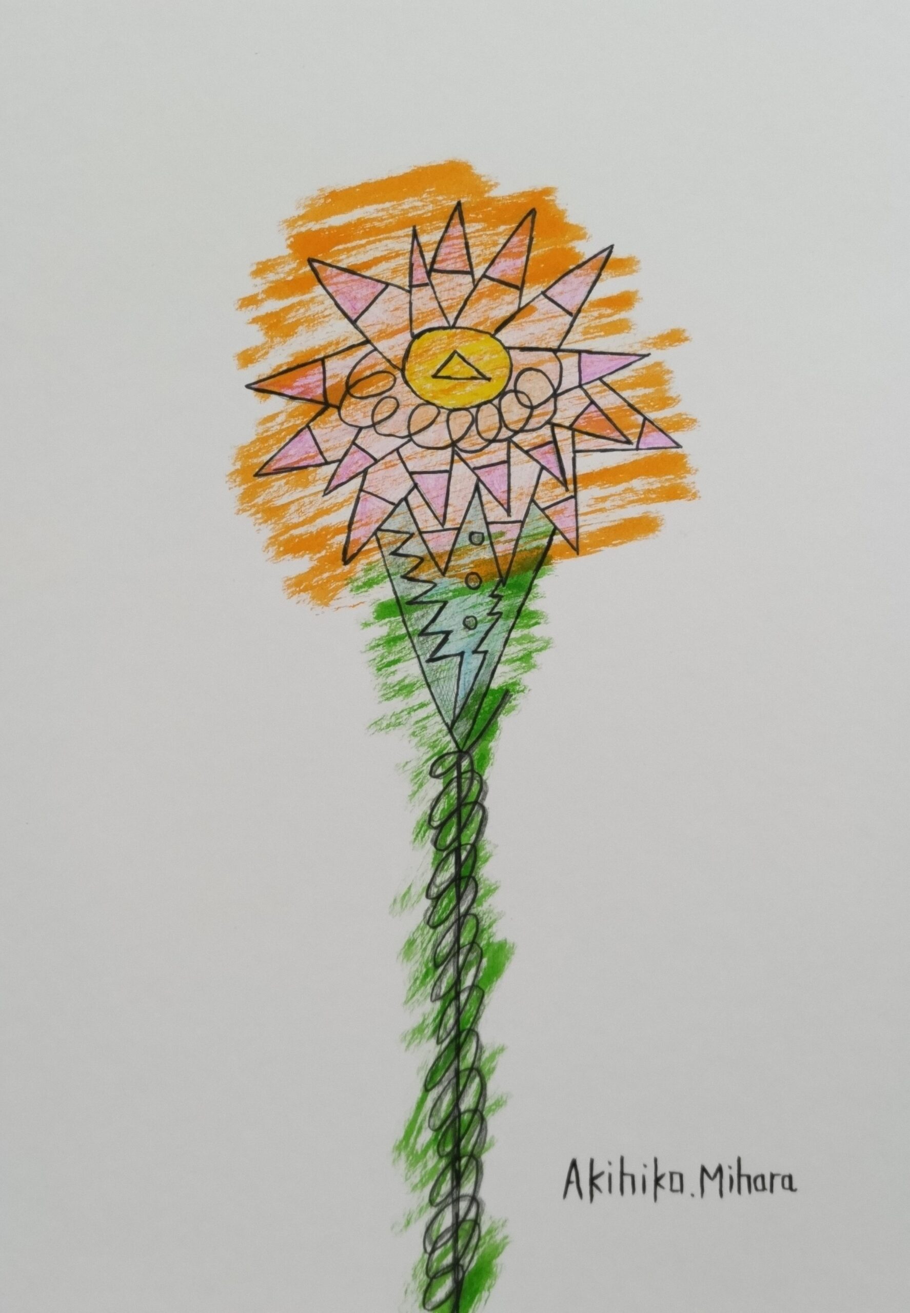 鉛筆、色鉛筆、ペン、筆ペンで描きました。
