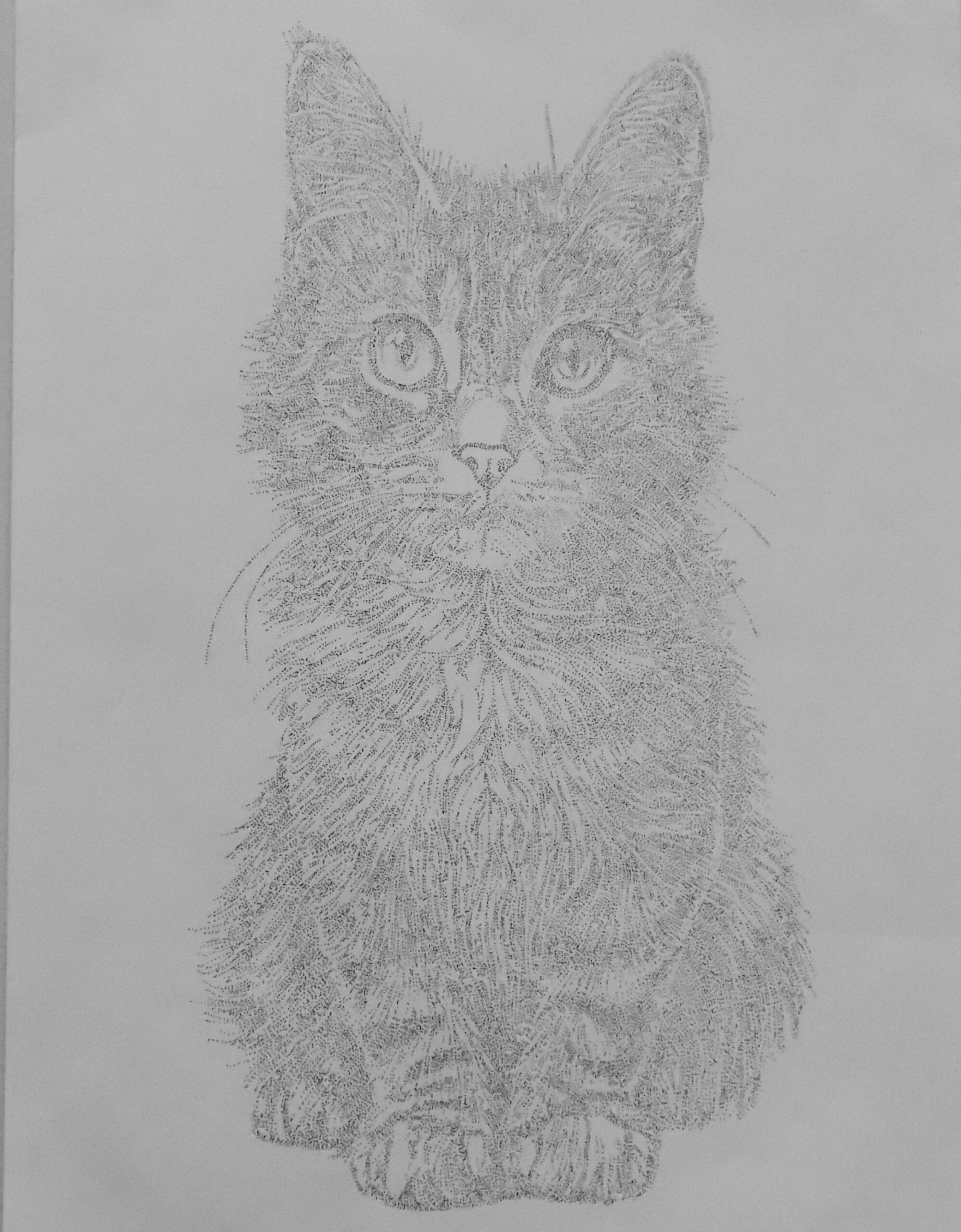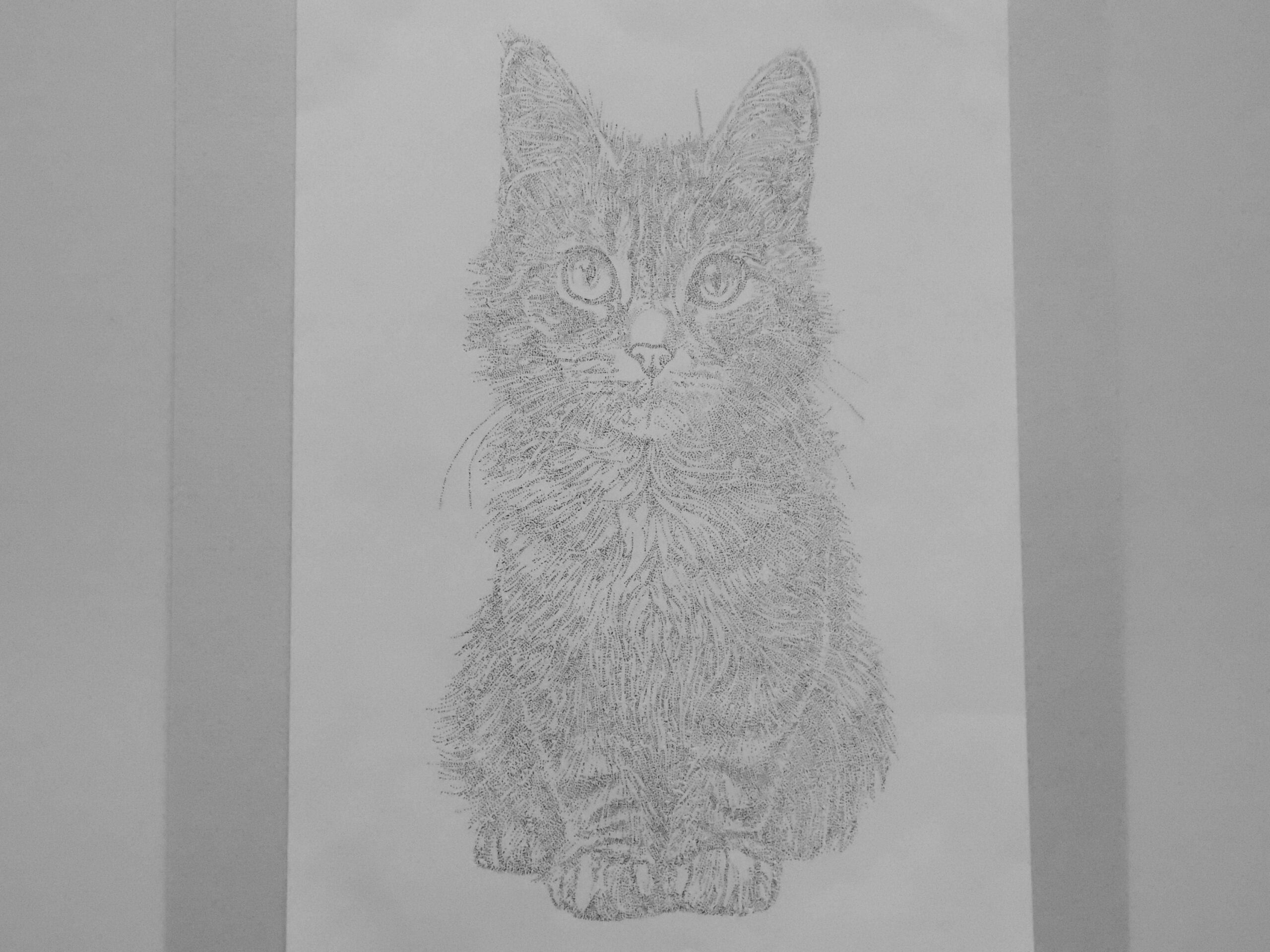 子猫の点描画です(0.1mmのDRAWING PENを使用)「点」で描く繊細なイラストです 原画販売のため1点ものです 1つずつ丁寧に製作しておりますがハンドメイドのお品物ですので至らない点もございますが、ご理解ください。