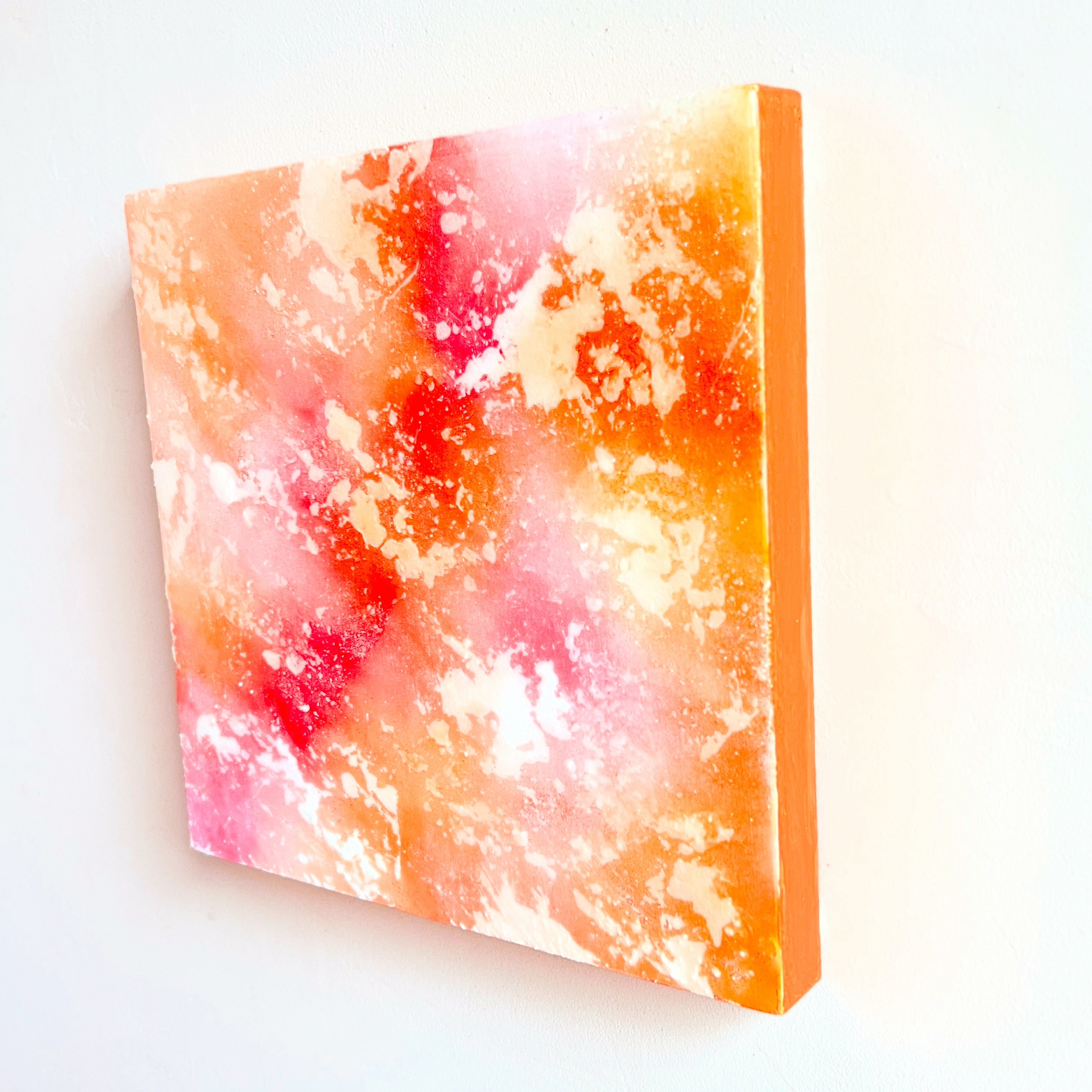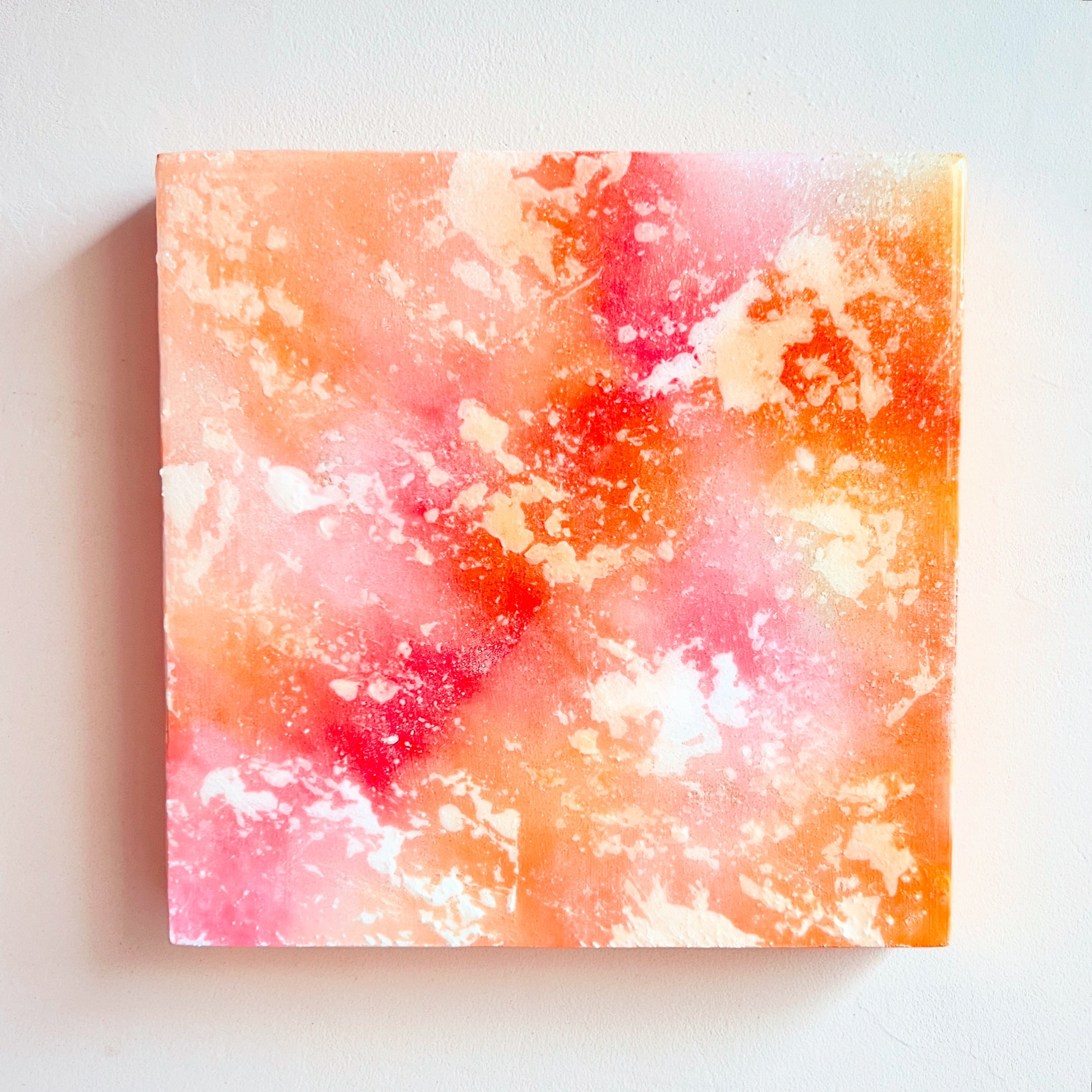 春のやわらかな風が、新しいページをめくるように、そっと心をくすぐる季節。 そんな優しい季節の訪れを、テクスチャーアートで表現しました。 春の光と若葉、花々の色が踊るような色使いに、キラキラ光るラメ入りのレジンが祝福の雰囲気を醸し出しています。 ★陽の光を浴びて輝く作品の全体像は、こちらの動画でもご確認いただけます↓ https://youtube.com/shorts/QdhE-ln9mSY?feature=share 新しいスタート、新しい季節、お部屋に春の温もりを…そんな方にぴったりな作品です。 朝見ると一日を明るい気持ちで始められ、リビング、寝室、玄関など、どこに飾っても春の光を届けてくれます。 この作品には、新しい季節への希望や喜び、人生の門出を祝福する想いを込めました。 桜の季節の特別な時間を感じていただけたら嬉しいです。 まるで春の光のように、あなたの未来を明るく照らし、希望へと導いてくれますように。 ☆木製パネルのサイズ:横180mm 縦180mm 厚さ22mm (約180g) ☆裏面に紐を取り付けてあるので、そのままお飾りいただけます ☆主な使用画材:アクリル絵の具、アルコールインク、ラメ、レジン ***ご購入前にご確認ください*** ・写真撮影の状況、ご使用のモニターの環境設定などにより実際の色と見え方が異なる場合がございます。 ・細心の注意を払って制作しておりますが、細かいホコリの混入やレジンの細かな気泡、歪み・凹凸などがみられる場合がございます。 特に原画自体に凹凸のあるテクスチャーアートの場合、必然的にレジン表面にも凹凸が生じる点、あらかじめご了承ください。 ・原画表面を強く擦らないようご注意ください。色移りのほか、塗料が落ちる場合がございます。 ・耐光対策を施しておりますが、紫外線が強く当たる場所や温度・湿度の高い場所はできるだけお控えください。 ・裏面に絵の具の付着がある場合がございます。