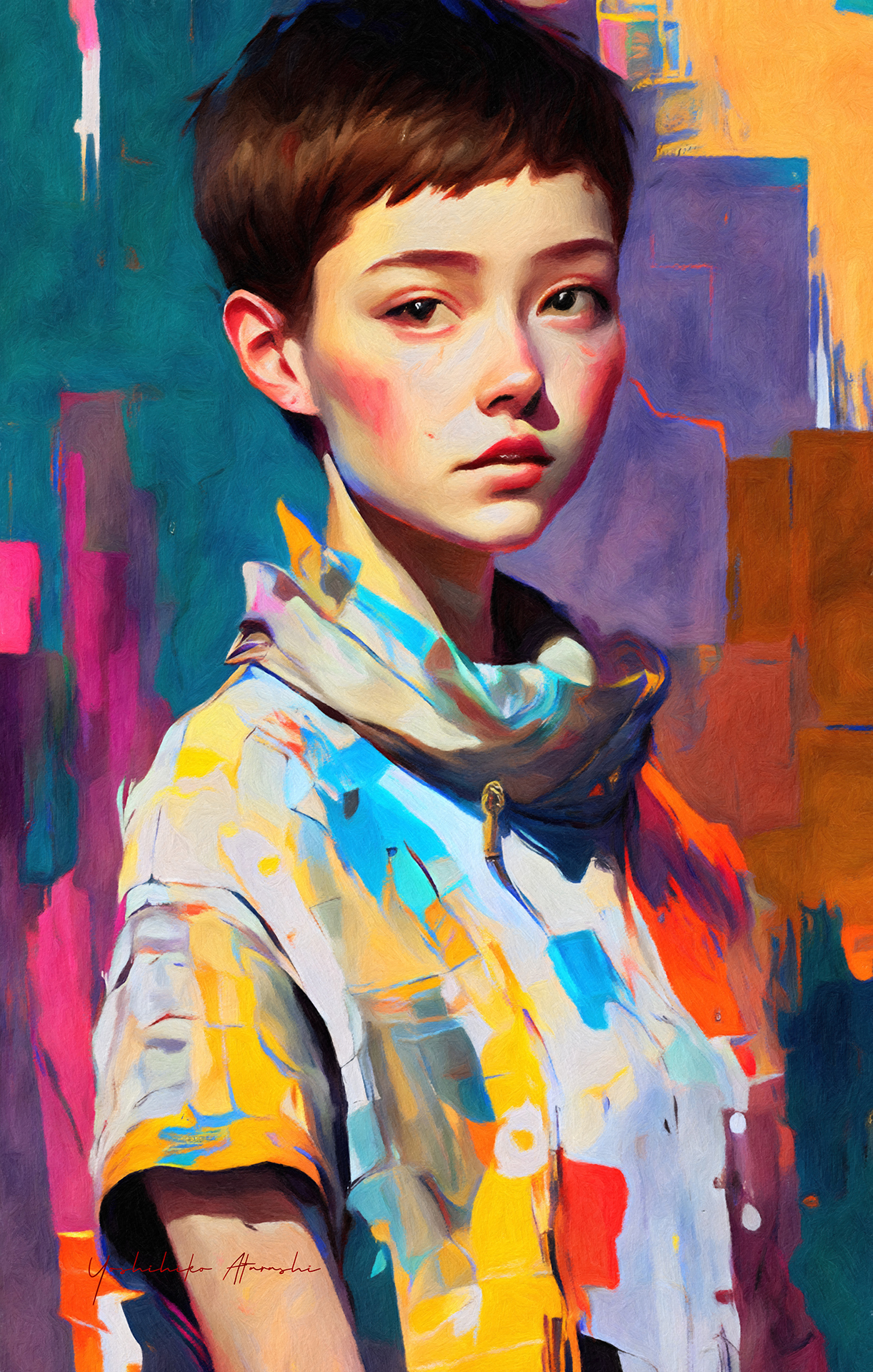 グラフィックデザイン・ウェブデザイン業のかたわら、デジタルペイントを中心に、様々な手法・作風で、風景画から人物画、抽象画まで、幅広く描いています。その多様性が私の個性と考えています。ぜひ、他の作品もご覧ください。掲載されている作品は、作家自身「私」が監修しましたジークレー版画で、限定部数は5部までとなっています。キャンバス背面に直筆署名、作品名・エディションナンバーを書いています。