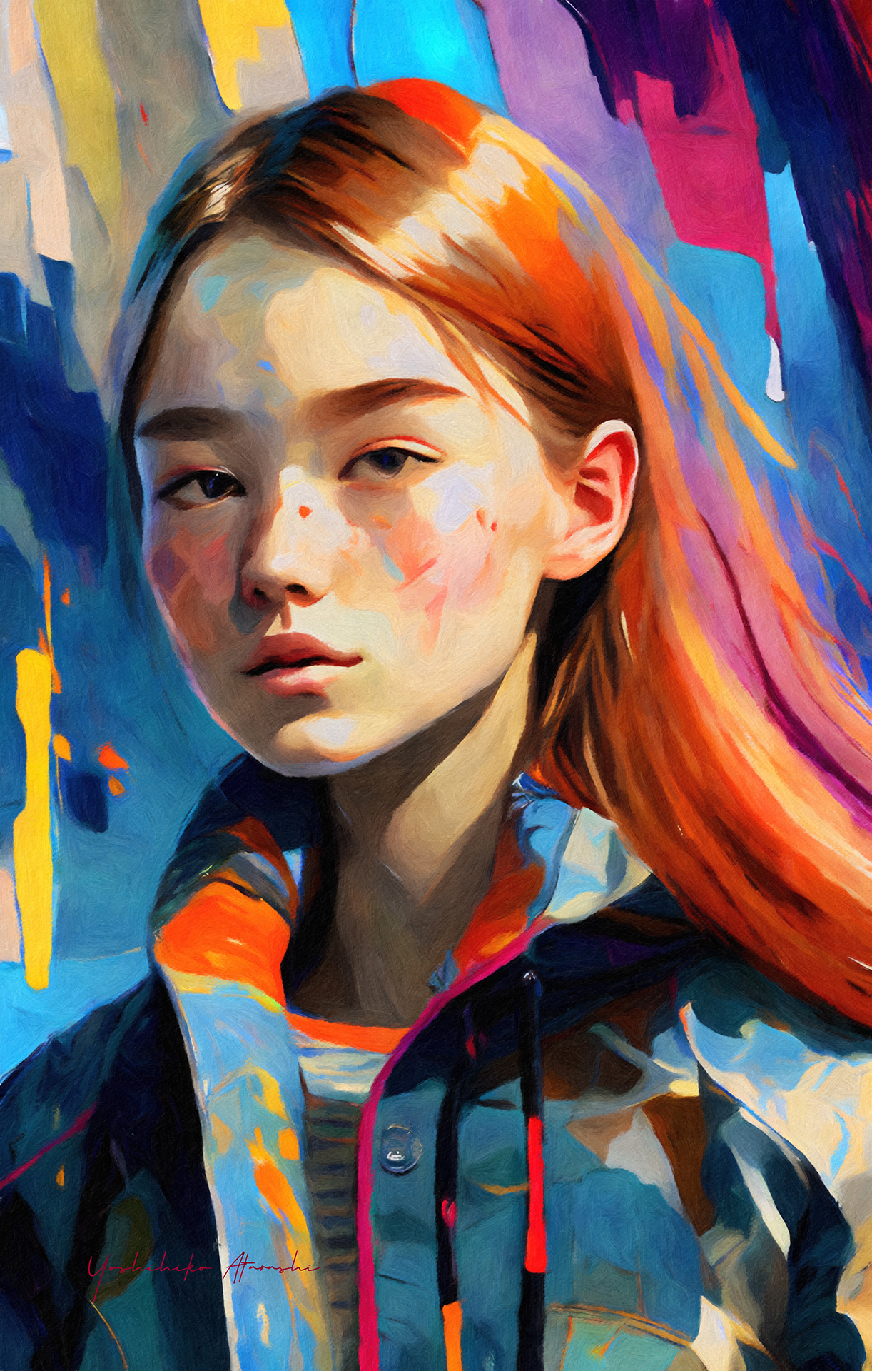 グラフィックデザイン・ウェブデザイン業のかたわら、デジタルペイントを中心に、様々な手法・作風で、風景画から人物画、抽象画まで、幅広く描いています。その多様性が私の個性と考えています。ぜひ、他の作品もご覧ください。掲載されている作品は、作家自身「私」が監修しましたジークレー版画で、限定部数は5部までとなっています。キャンバス背面に直筆署名、作品名・エディションナンバーを書いています。