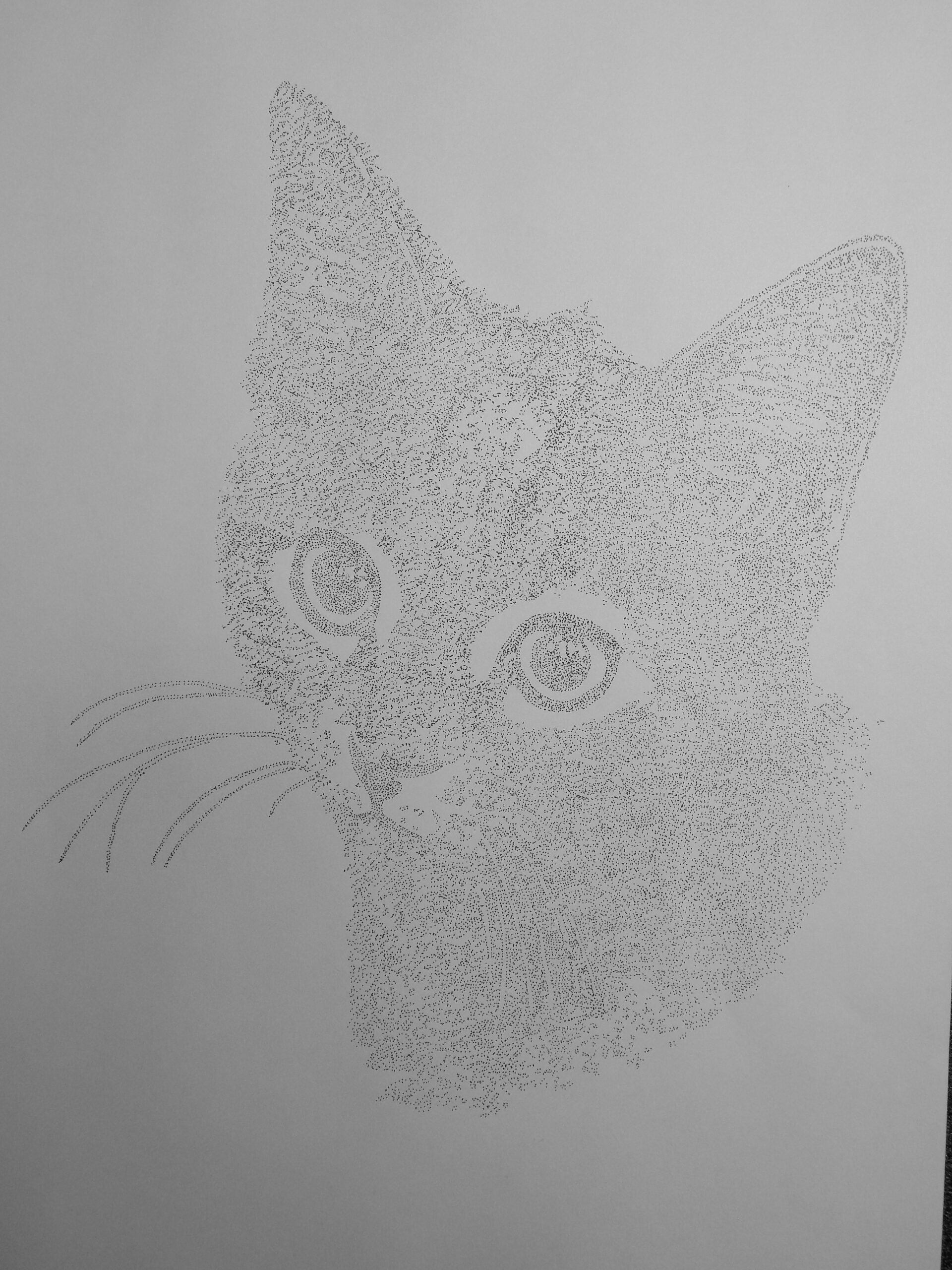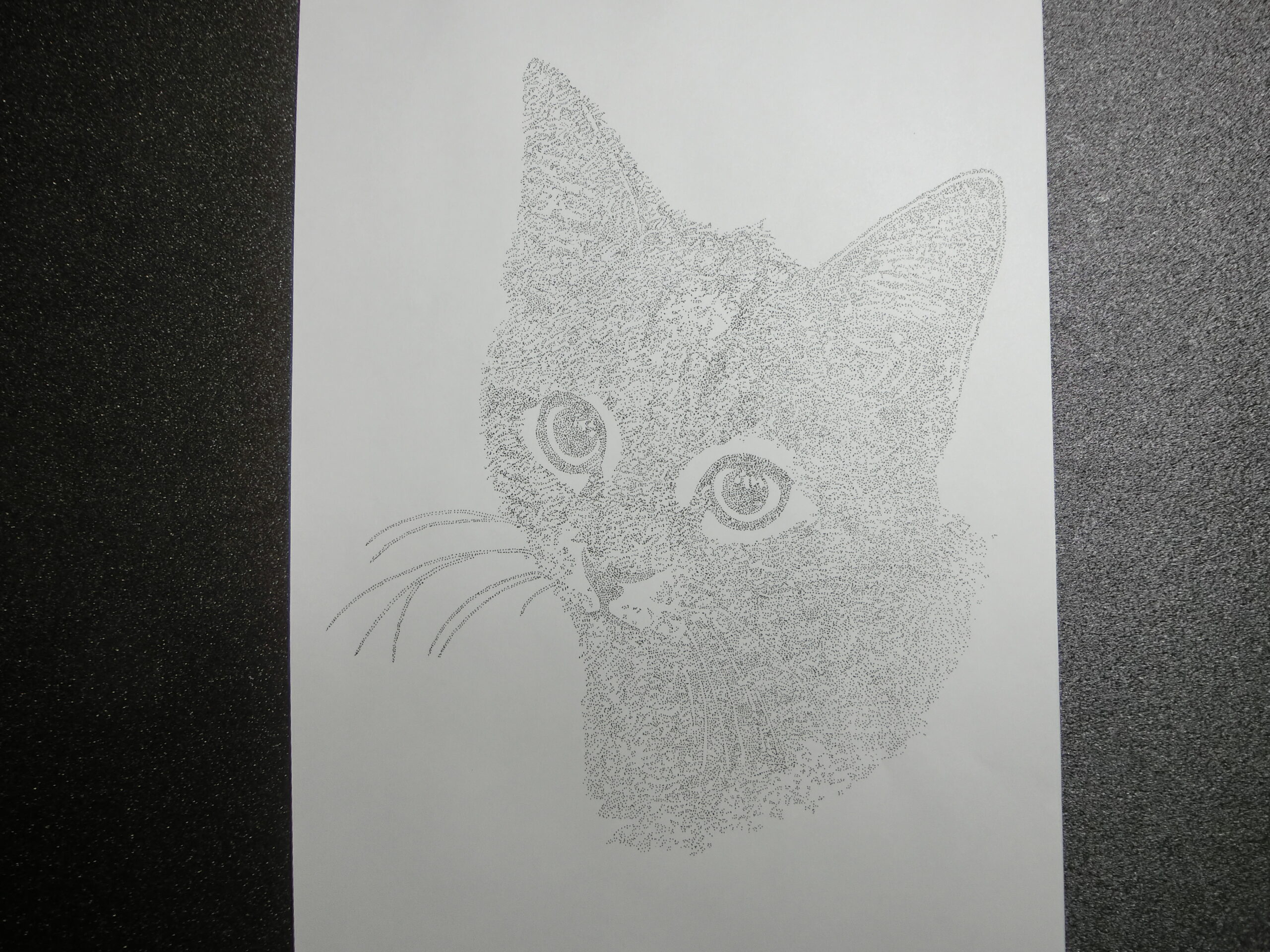 子猫の点描画ですモノトーンの落ち着いた中にかわいらしさを現した繊細なアナログイラストです。ウェブ上では細密描写が表現しきれない場合がございますが、ご容赦ください。