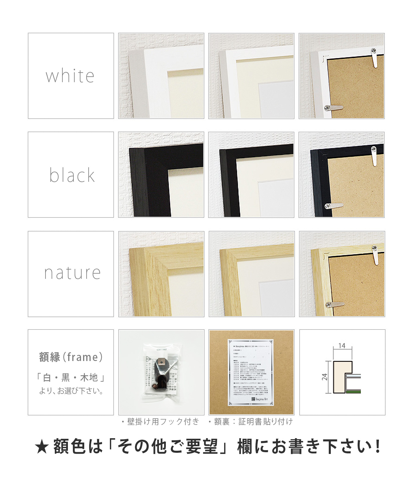 (お客様へ) 額色は> 白・黒・木地からお選び「その他ご要望」欄にお書き下さい!
