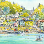 日テレ旅番組の「自転車百景」で専任イラストレーターとして国内外200点余の水彩風景画を描く。