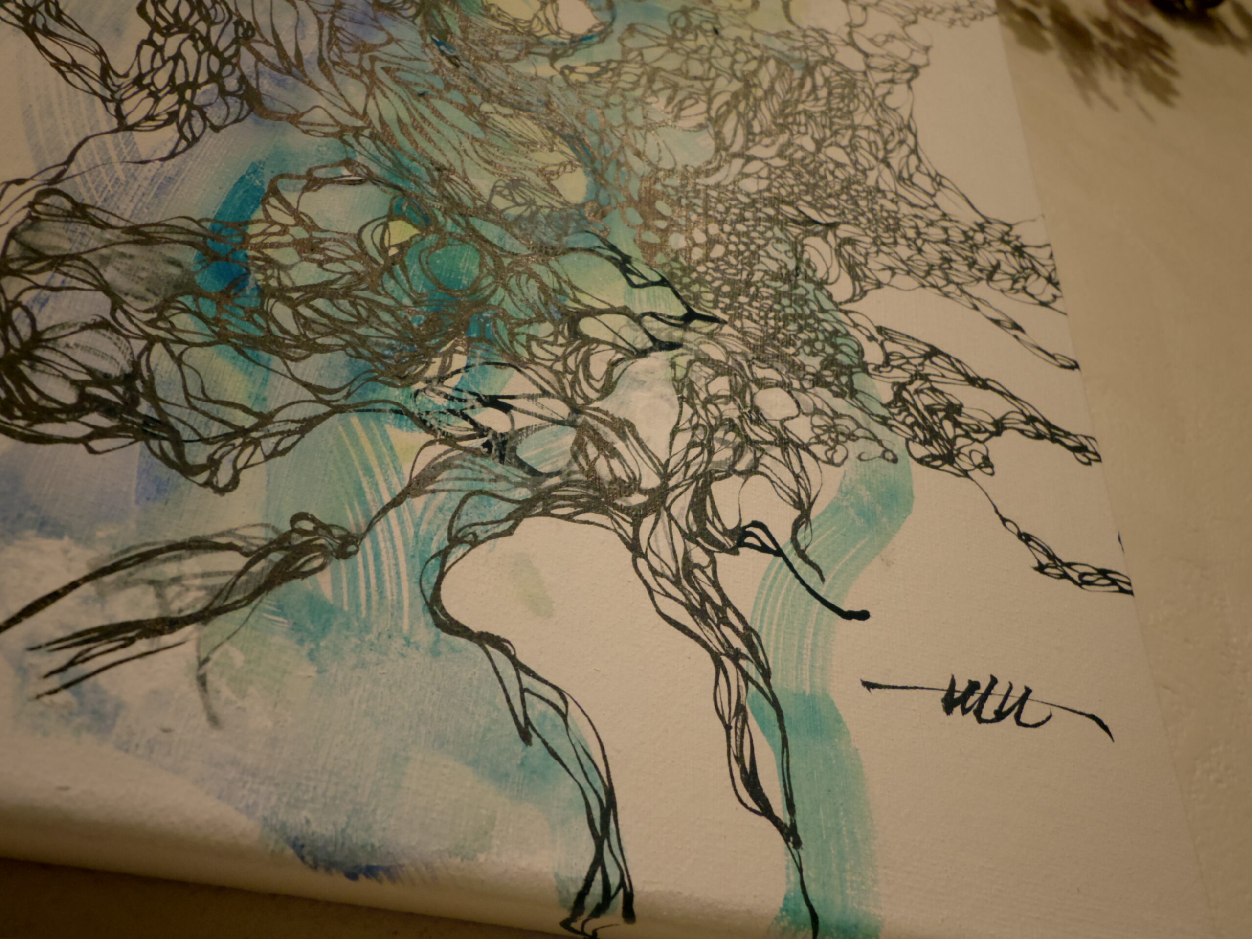 「からみほぐし」の線の理論で、より表現としての幅を広げたいという思いもあり、線を描くことや写真を用いて風景のもつ線のバランスを捉えること、線によって空間を表現すること、、、など、「からみほぐし」の線で表現することを続けています。