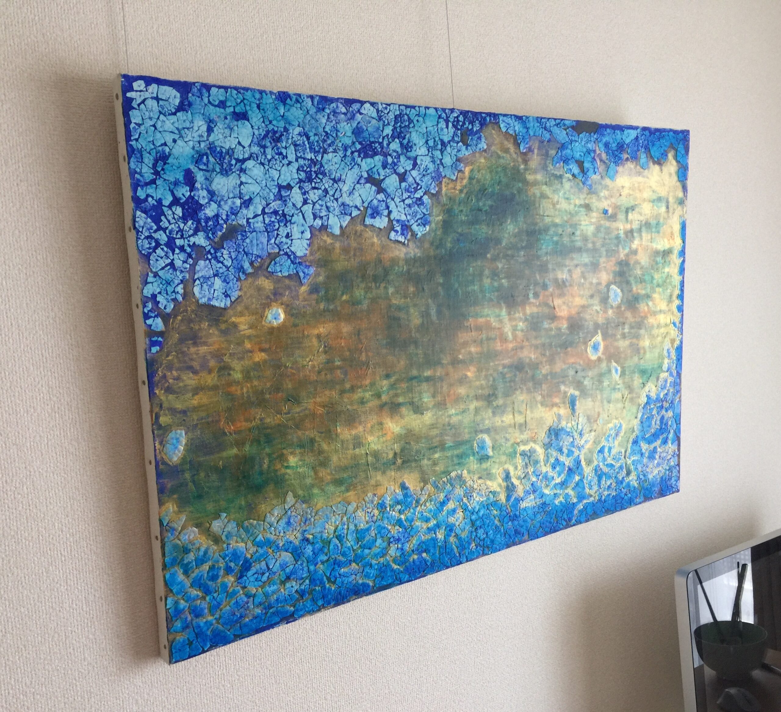 大きめの作品です。 額装はありません。 縦でも横でもお好きな方向で。 瞑想に良いかも。 抽象をまだ本格的に追求してはいない5年前に発表したものです。